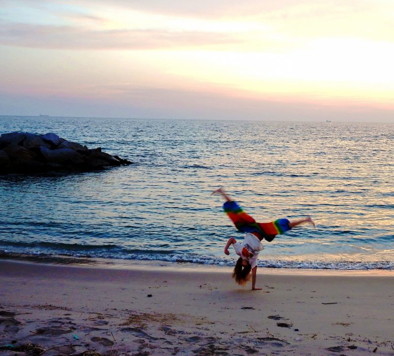 Speaking of yoga, have you ever gotten acrobatic on the beach? It’s fantastic. Sand is like nature’s pillow. There’s no better place to practice handstands, cartwheels, or crazy moves. If you fall, no worries, you’ll just get sandy.