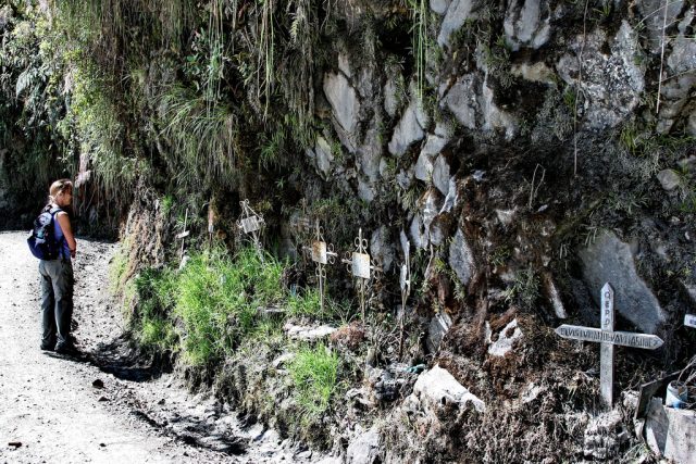 It is 35 miles (56 kilometers) long, and it has various names – the Coroico Road, Camino a Los Yungas or Road of fate. In 1995 it was listed as the “world’s most dangerous road” by the Inter-American Development Bank. According to a 2006 report, it has been estimated that there are 200 to 300 travelers per year killed along the road. The road is full of crosses marking the spots where vehicles have fallen off.