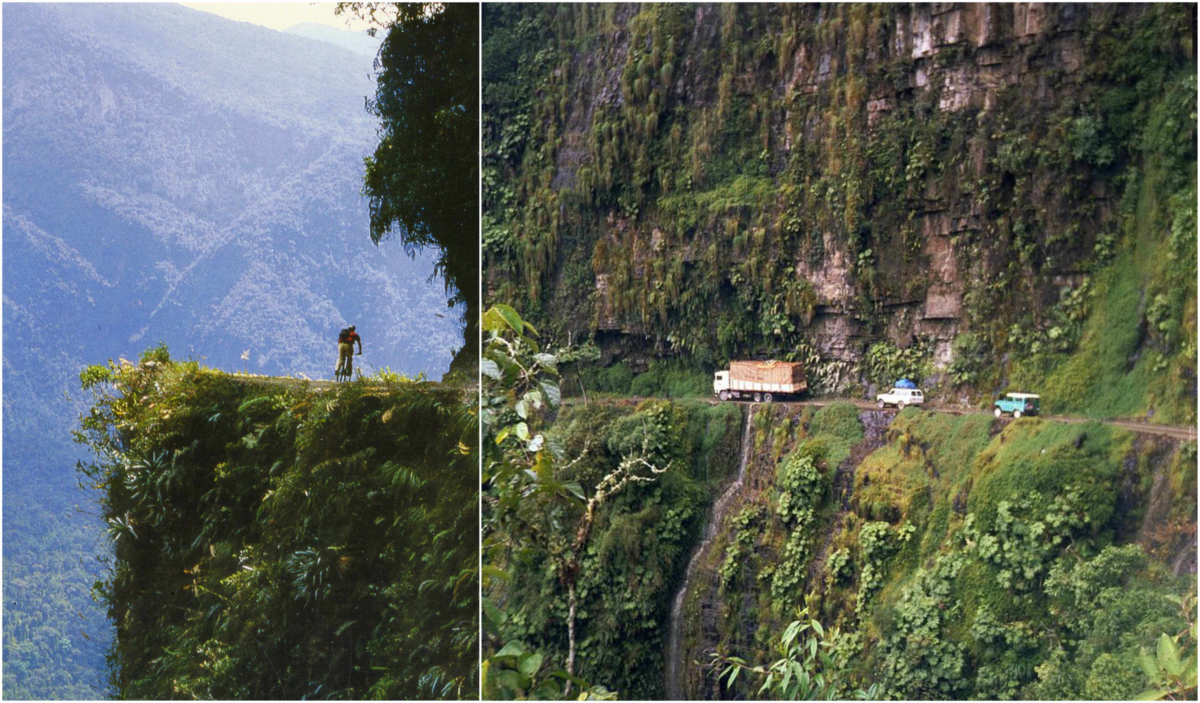 Famously known as the ‘Death Road.’ The North Yungas Road which leads from La Paz to Coroico in the north of the Yungas region of Bolivia.