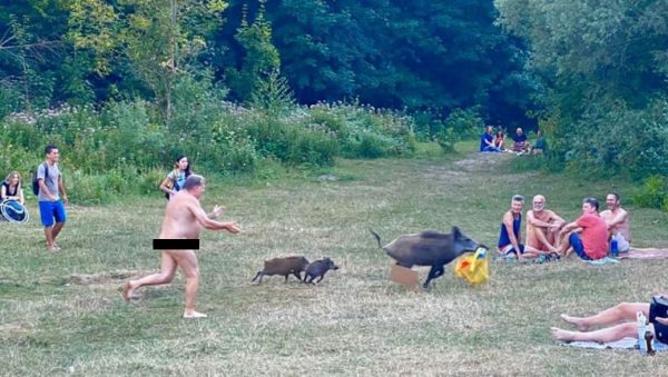Nudist Chases After Wild Boar who Nicked his Laptop