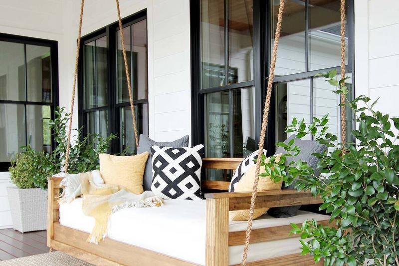 For those who are on a budget or not totally sure about having a swing on their porch, this porch swing from Shanty 2 Chic is the one to try. Not only is it sleek and stunning, but you can't go wrong with spending only $40 on your build. We are sure that you will love it and probably continue to add to it as you get more ideas for taking your patio swing to the next level.