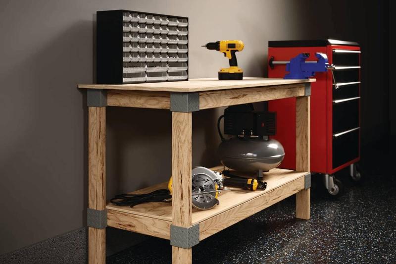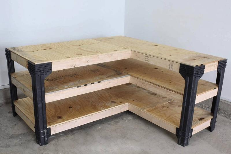 L-Shaped Garage Workbench and Shelf Link Storage Bracket Kit