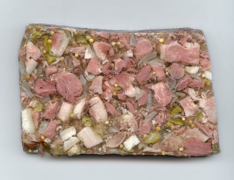 Now I would like you to maintain an open mind before dismissing the idea of head cheese. The dish is not cheese at all, but is made out of the head from either a pig, cow, or sheep. The head is typically boiled and the fatty marrow of the animal creates a kind of jelly-like texture around it. It can then be sliced for sandwiches, dinner, or even simply put in a salad. This is still a common food found across Europe, just as it has been since the middle ages.