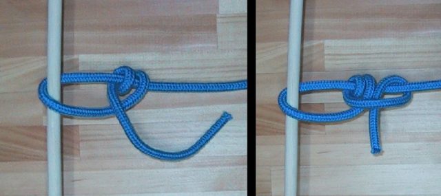 The Taut-line Hitch which is an adjustable loop can be used where the ropes are pulled tightly. This is the knot to use when adjustments will periodically be needed. If you are climbing trees, for example, ropes will need to be adjusted as you climb higher. Sometimes this particular knot is referred to as a Tent Line or Riggers Hitch. The knot is ideal if you are tying covers over things in the case of having to occasionally loosen the knots to retrieve things from time to time.