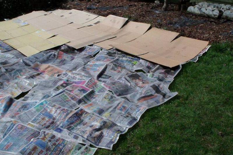 Tip: Soak the cardboard or newspaper first so it molds easily to the ground and starts breaking down faster.