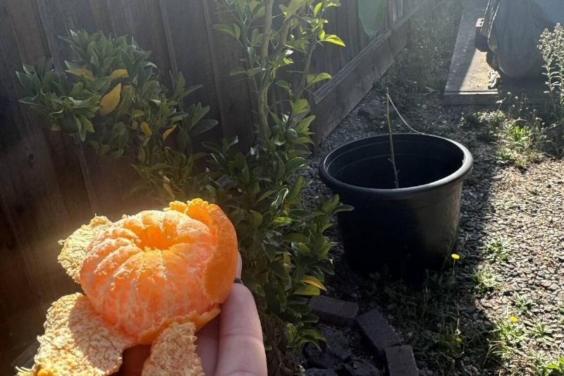Eight years is true dedication, but it finally paid off with mandarins! Every homegrown fruit is a tiny, delicious trophy, and knowing how long this tree took to produce fruit, that must have been the most satisfying bite ever. You can almost taste the anticipation in this photo!