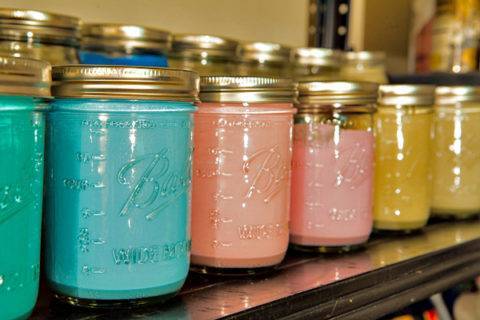 Who doesn’t have a little bit of leftover paint from a DIY project? Whether you are painting a room or the outside of the house, you are bound to have some left. But storing these big, cumbersome paint cans can be a real hassle. So why not make something a bit nicer and neater? With some old masonry jars, you never have to wonder what color paint you have again. Easy to store, easy to access, and easy to use.