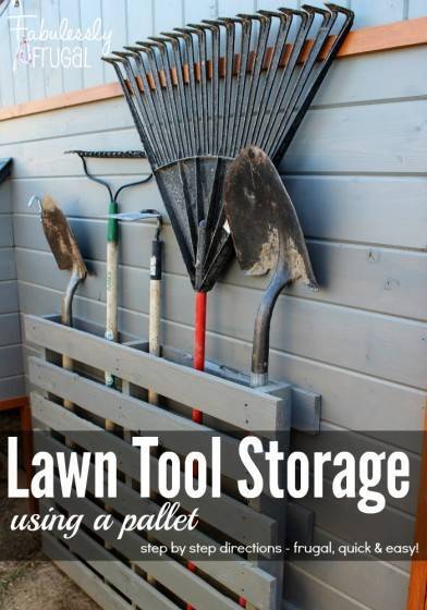 You would be surprised at the sheer amount of uses that you can get out of a pallet. They can be repurposed for so many DIY needs. For the amateur gardeners, keeping rakes, hoes, shovels, and the like can be messy and disorganized. But with a pallet simply painted and nailed into place, you can safely store all of those things with no issue.