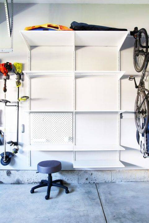 This is not the shelving that you think it is. With just a few wood boards and a few slots carved out, you can mount any of the long, awkward outdoor tools that you need. It is a simple, effective way to keep these tools off the floor and safely stored. Best of all, it is a project that should reasonably be done within an hour or two.