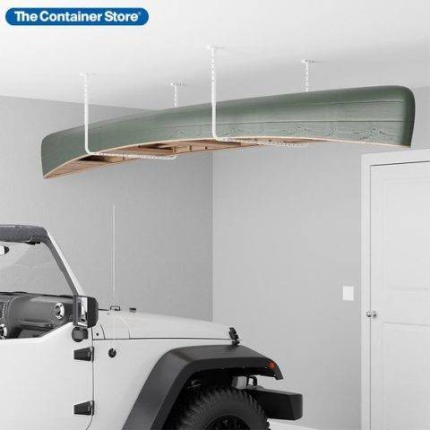 If you find yourself enjoying a river rafting trip or a quiet day on the lake, having a small canoe or paddleboat can come in handy. But what do you do when it comes time to store them? They can take up a ton of space no matter how you cut it and you may want to save that space for other things. But with a few simple rounded brackets, you can create the perfect ceiling mount to keep your canoe or boat stored safely.