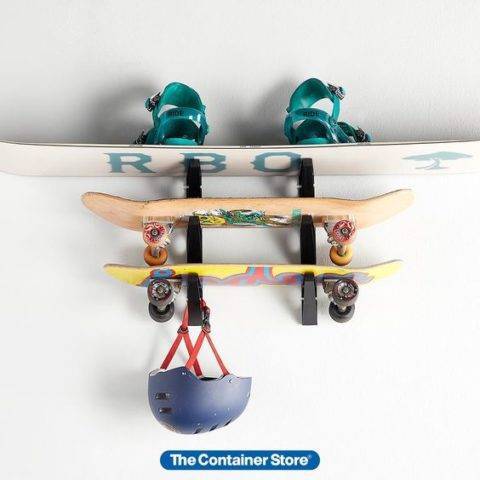 Enjoy the more extreme activities but don’t have a great spot to store your stuff? Well, it is easier than you think. You can create DIY racks for holding your favorite board with just a few simple mounted hooks. Find hooks that are angled up a bit higher and you will have the perfect spot to hold your boards securely and out of the way.