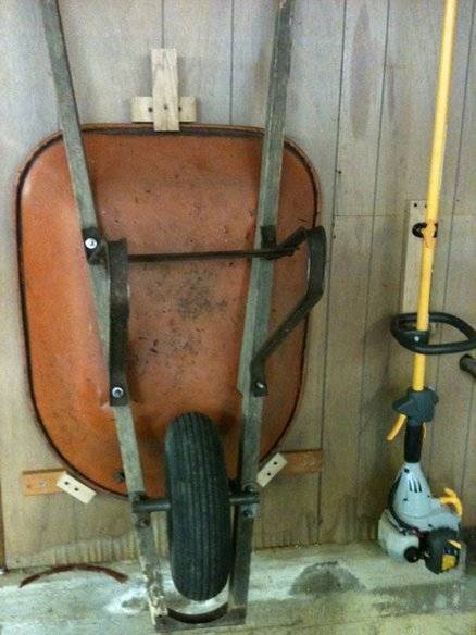 Having a wheelbarrow means hauling materials in bulk with ease. But storing that wheelbarrow can result in major frustration if you do not have the proper options. With just a few small pieces of wood and a couple of screws, you can create the perfect holding option. Simply tip your wheelbarrow upright and slide it between the screwed-down pieces. It will hold securely and neatly in place until you need it next.