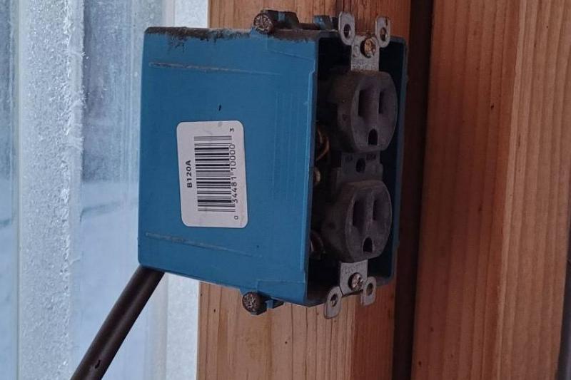 Once you have your outlets in place, drill ½ inch holes through the studs of your shed and pull 12/2 gauge wire from outlet to outlet. The maximum on one circuit including overhead lights should be six total.