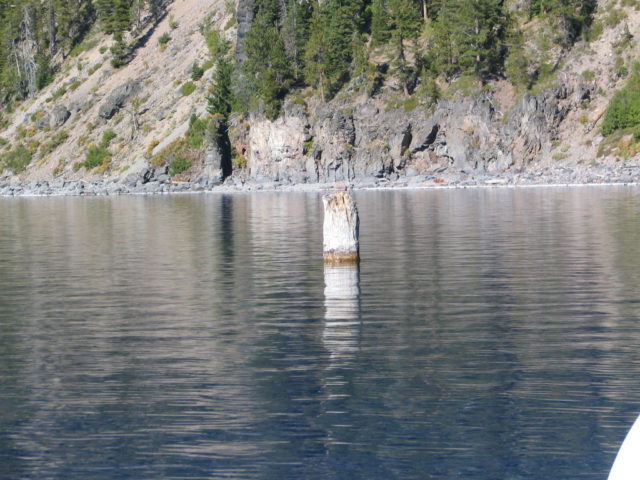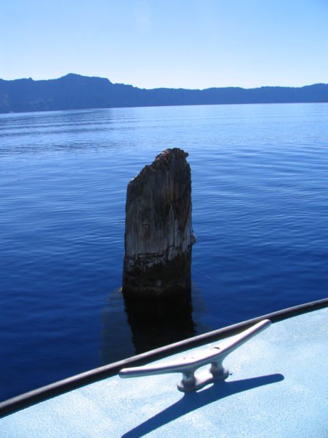 The Old Man of the Lake is a 30-foot (9 m) tall tree stump, most likely a hemlock, that has been bobbing vertically in Oregon’s Crater Lake since at least 1896.