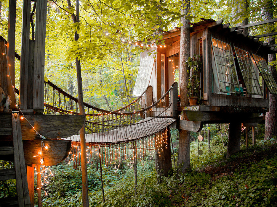 The secluded in-town Treehouse in Atlanta was built by the executive director of Greenpeace. It is on a property in Atlanta and is a network of three interconnected treehouses. They are being rented out with Airbnb for a limited time at a cost for two people of $350 per night.