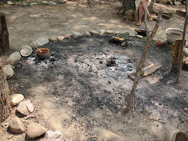 Coals can be used for cooking and this setup is good for groups cooking at the same time.