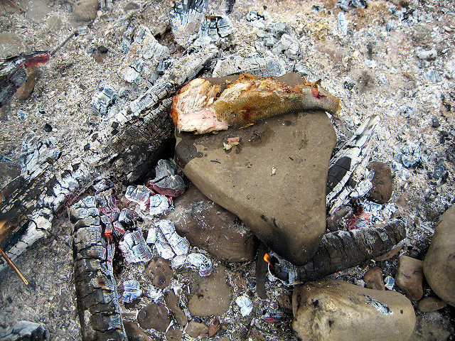 This is a very easy and somewhat exotic way of cooking a meal. Just set up a fire, and wait until it burns out so that you have hot coals in your pit.