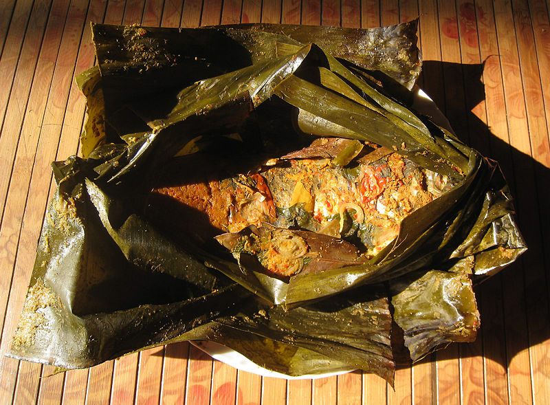 Find yourself few big leafs (nonpoisonous), clean them up, and wrap your meal in them, place the wrapped food in a pit with hot coal and cover it with more hot coal. In just a few easy steps you could have a hot, delicious meal. This is good for foods that do not need to cook for a long time, such as fish.