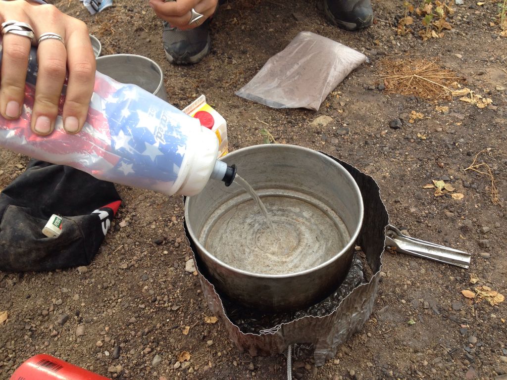 Next, add the peanut butter. Peanut butter is possibly the best part of Backwoods Gourmet Brownies and the ingredient that sets it apart from regular brownies. The PB takes the place of oil in the brownie box’s recipe and adds some much needed protein for energy to tackle whatever back country activity you have planned. Because PB is so deliciously useful, I keep a jar on me at all times in the back country and I have it at practically every meal. Use as much as you feel is necessary in your brownies. The flavor of PB pairs well with the chocolate in brownies, so feel free to be generous. I suggest a few healthy spoonfuls.