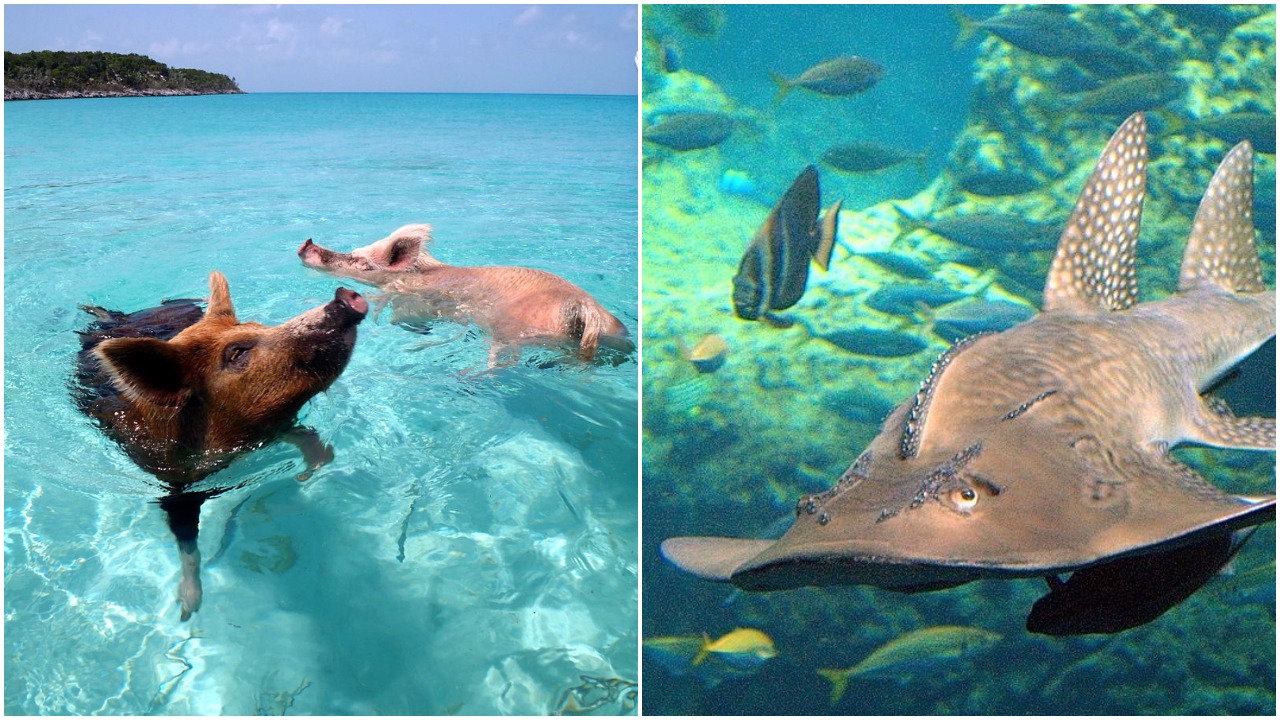 The Bahamas is the ‘Official Home of the Swimming Pigs’. Visitors to the islands are happily embracing the unique and special experience of swimming with the pigs on the uninhabited island of Big Major Cay, which is home to these special creatures and affectionately called “Pig Beach”. The swimming pigs join the vast selection of aquatic activities already popular with visitors to The Bahamas, from snorkelling with tropical fish and sea turtles to shark and eel sightings to scuba diving says bahamas.com