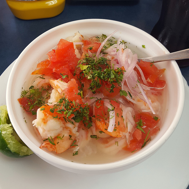 The most refreshing street meal you can get is the “ceviche” – on the coast you will find a ceviche with shrimps, fish, oysters, and all different type of sea-food in a lime juice. In the highlands, the ceviche is served with chocho beans (native to Ecuador and very nutritious), onion, tomato, cilantro, lime juice, salt, and topped with popcorns or banana chips.