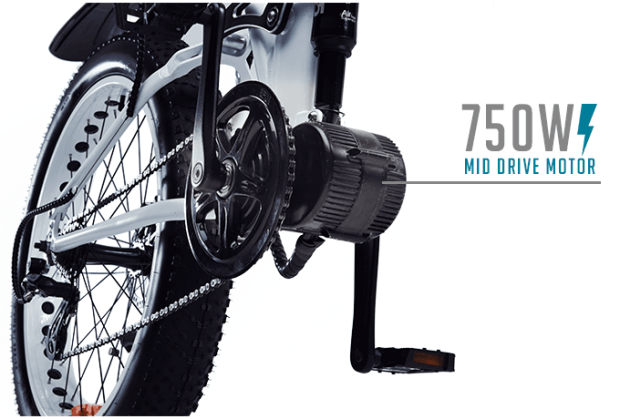 750W Mid-Drive Electric Bike Motor Our silent 750w rated mid-drive motor drives the chain directly through its Shimano 9 speed gears, giving riders more precision control over their riding.