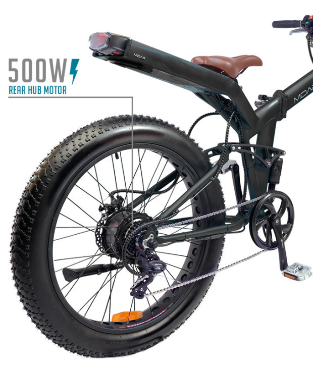 MOAR is powered by either a 500w rear-hub or a 750w mid-drive motor.
