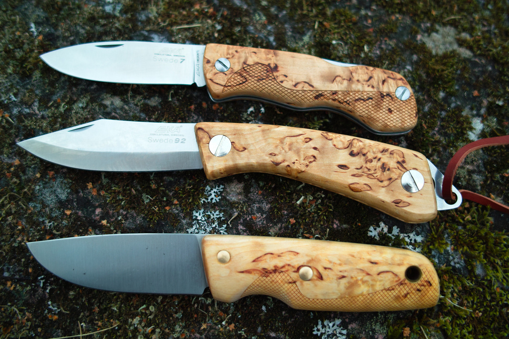 Here is another comparison with two other EKA knives with curly birch handle; Swede 92 and Nordic H8.