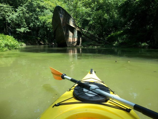 A kayaker stumbles across an old ‘ghost ship’ in the Ohio River