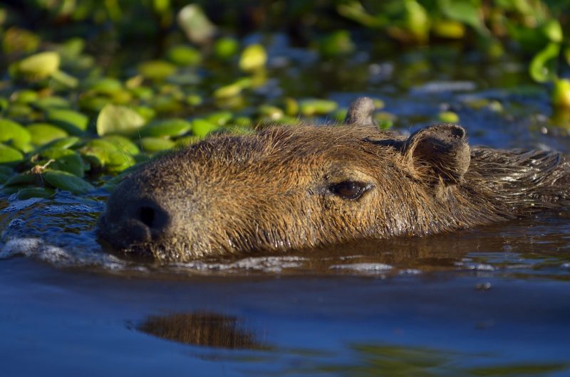 Their evolution is connected tightly to the water because they spend all the time close to bodies of water. It’s no surprise, then, to find that capybaras can stay submerged underwater for up to 5 minutes. Being vegetarians, they mostly feed on aquatic plants. Their skin needs to be kept moist all the time, so living near water is the only choice they have.