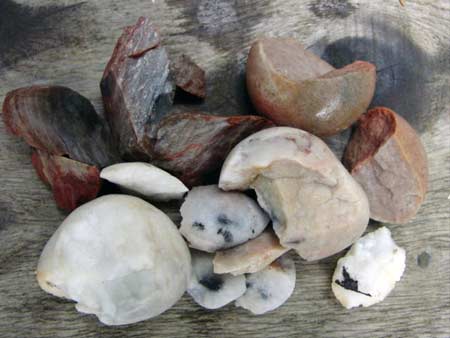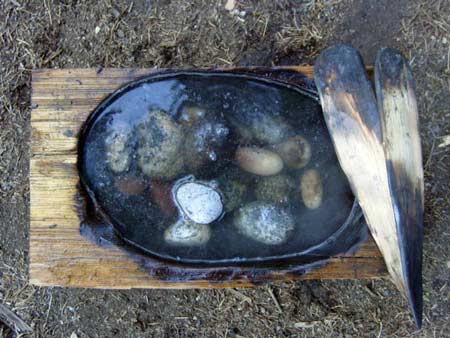 Rock boiling is one of my favorite Stone Age (pardon the pun) methods for water purification and also a great method of survival cooking of food. Some alternatives for survival cooking and water purification are energy intensive and more difficult to prepare (rawhide bags, pottery). Rock boiling requires a fire, some rocks, and a coal-burned container. I started experimenting with rock-boiling while living in Olympic National Park (WA State). I had heard that some types of rocks were better to use than others, but I couldn’t locate any information regarding which tended to crack (or explode!) and which are keepers for a lifetime. So here are the results of my very limited exploration on the subject at hand.