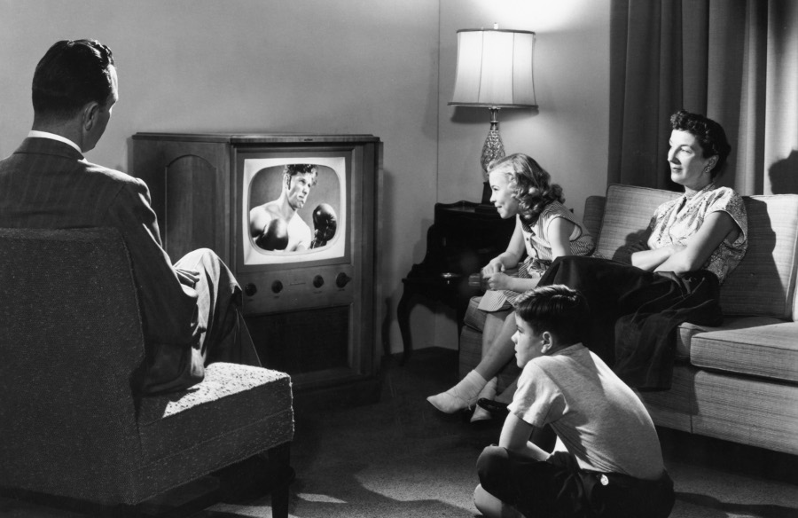 The stereotypical '50s family spent quality time together on a regular basis. That often involved watching television programs like this family viewing a boxing match in 1950. Some popular TV shows during that time were I Love Lucy, Father Knows Best, The Honeymooners, Leave it to Beaver, and Gunsmoke.