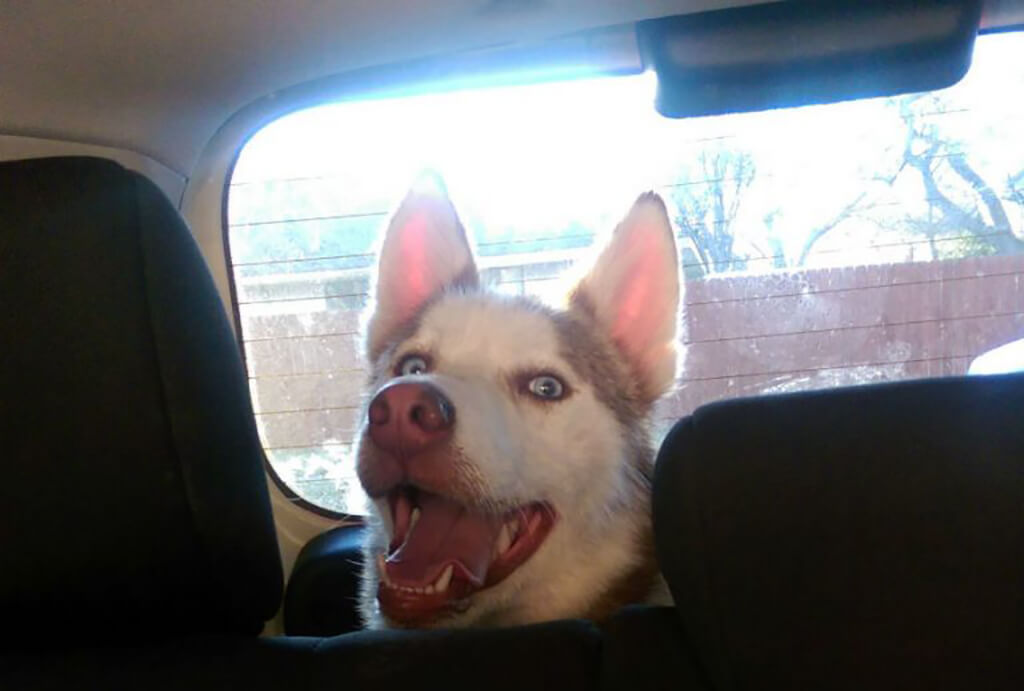 Believe it or not, Wulfgar even has the route to the dog park memorized. Now that's dedication. According to the owners, "As we get closer he starts whining and hopping around in the back seat out of excitement."