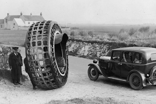 As a mode of transportation, the vehicle could reduce locomotion to the simplest form, but this “high-speed vehicle of the future” was also impossible to steer or break. The driver could also get thrashed around inside the monowheel like a gerbil. The Dynasphere definitely isn’t taking over anytime soon.