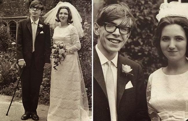Stephen Hawking is one of the most brilliant minds the world has ever seen. He is physically recognizable because he is paralyzed due to amyotrophic lateral sclerosis. Hawking is shown here in a rare photo of his younger years, on his marriage to Jane Wilde in 1965.