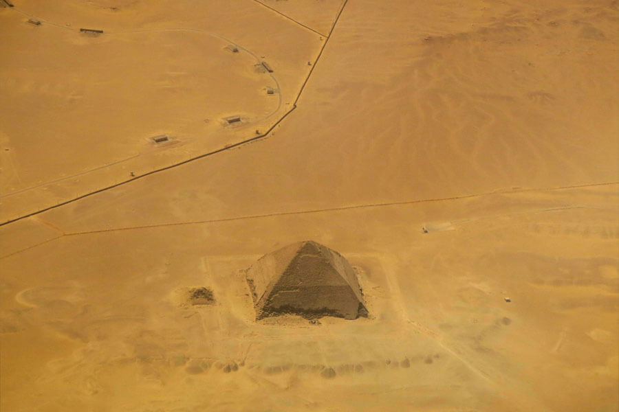 Most of us think of the Great Pyramid as a typical four-sided pyramid. It certainly looks that way from the ground, but hop on a plane and your perspective may shift. The Great Pyramid of Giza has eight sides, and it's only visible from an aerial view. Some people believe this was a way to keep the casing stones from shifting.