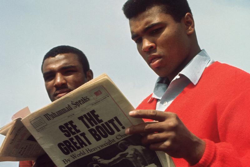 Professional boxer Muhammad Ali reads the newspaper reporting about his fight in the 1960s. Ali was a professional boxer, philanthropist, and has been credited as one of the most celebrated sports icons of the 20th century.