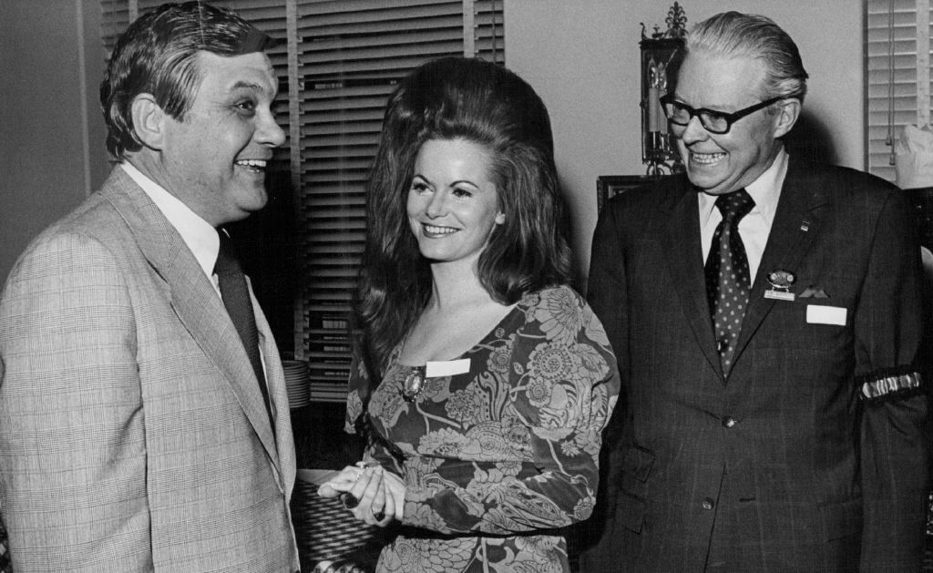 Harper Valley PTA was written by Tom T. Hall which became a huge country hit for Jeannie C. Riley (center). The song released in 1968 and grew so large that it eventually became the basis for a TV series.