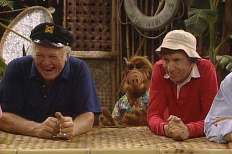 In addition to Roseanne as mentioned in previous slides, the castaways would often reprise their roles on other television shows. They were featured in an episode of the late 1980s sci-fi sitcom, Alf. In the episode, Alf is obsessed with the charm of Gilligan's Island, watching marathons and trying to relive the "endless fun" that the Gilligan's Island cast always seems to be having.