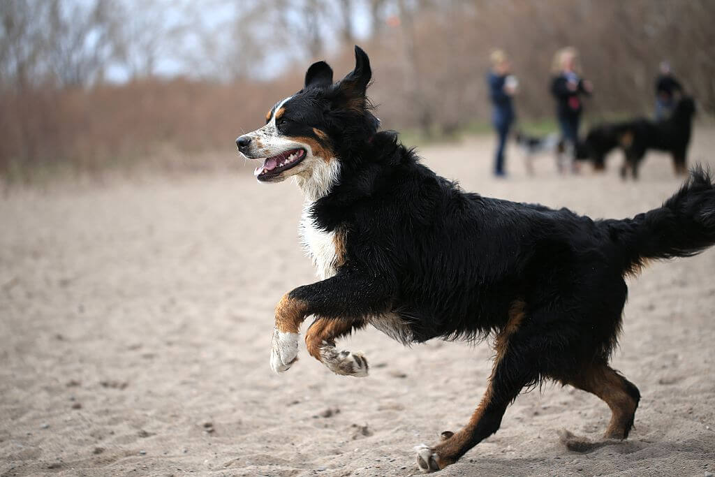 But when this happens around other dogs, it usually signals playfulness. Dogs standing on their hind legs during play almost look like they’re wrestling. As long as there’s no growling or aggressive behavior, it’s all just fun and games.
