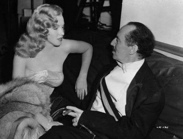 Here she is pictured talking to comic star Groucho Marx on the set of one of her first films, Love Happy, where she had a small part in 1950. It was one of six movies she appeared in during the same year. But it wouldn't be until the following year when she signed with Fox that things really started to take off for her.