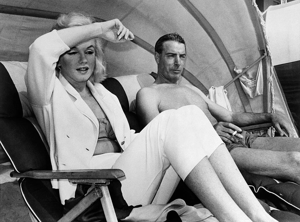 Here, the pair is on the set of Marilyn's last film, The Misfits. By this point, the 35-year-old actress was falling out of favor with critics. She was heavily addicted to barbiturates and struggled to stay focused. After filming wrapped Monroe divorced her final husband, writer Arthur Miller, during a quick hearing in Mexico.