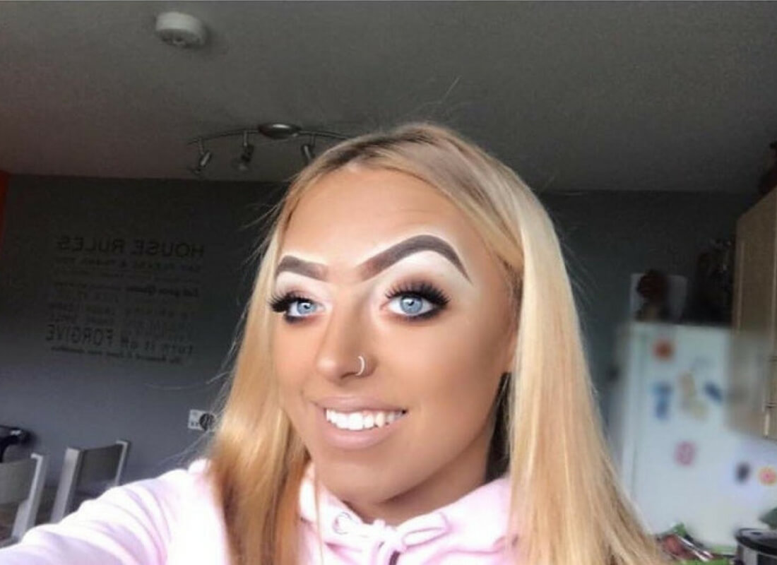They say that eyebrows are supposed to frame the face and this lady took that quite literally. She must have a thing for perfect right-angles because that's precisely what she decided to draw when she wanted to replace her natural brows.