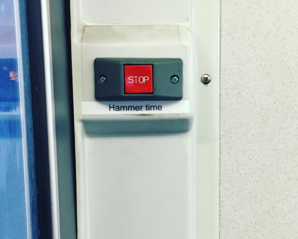 This is one of the most clever mild vandalism initiatives I have ever seen. A piece of red tape can do so much more than a whole bottle of spray paint.