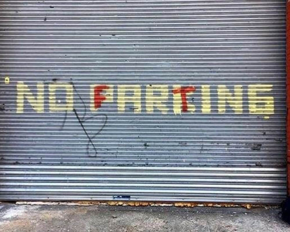 It is such a simple move, yet it is somehow so effective. Farts are always funny. All of the memes on the internet have led us to this moment: a simple fart joke on the front of a parking garage.