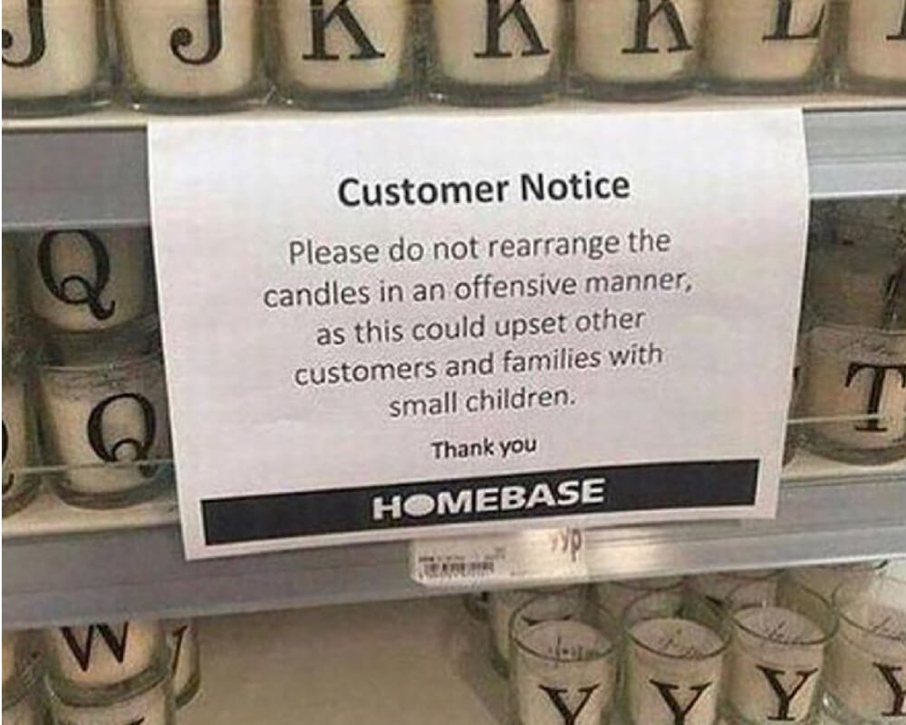 They're trying to stop our fun! What if we just arrange the candles in a funny way that isn't offensive to small children? Like if we use them to spell "stay in school."