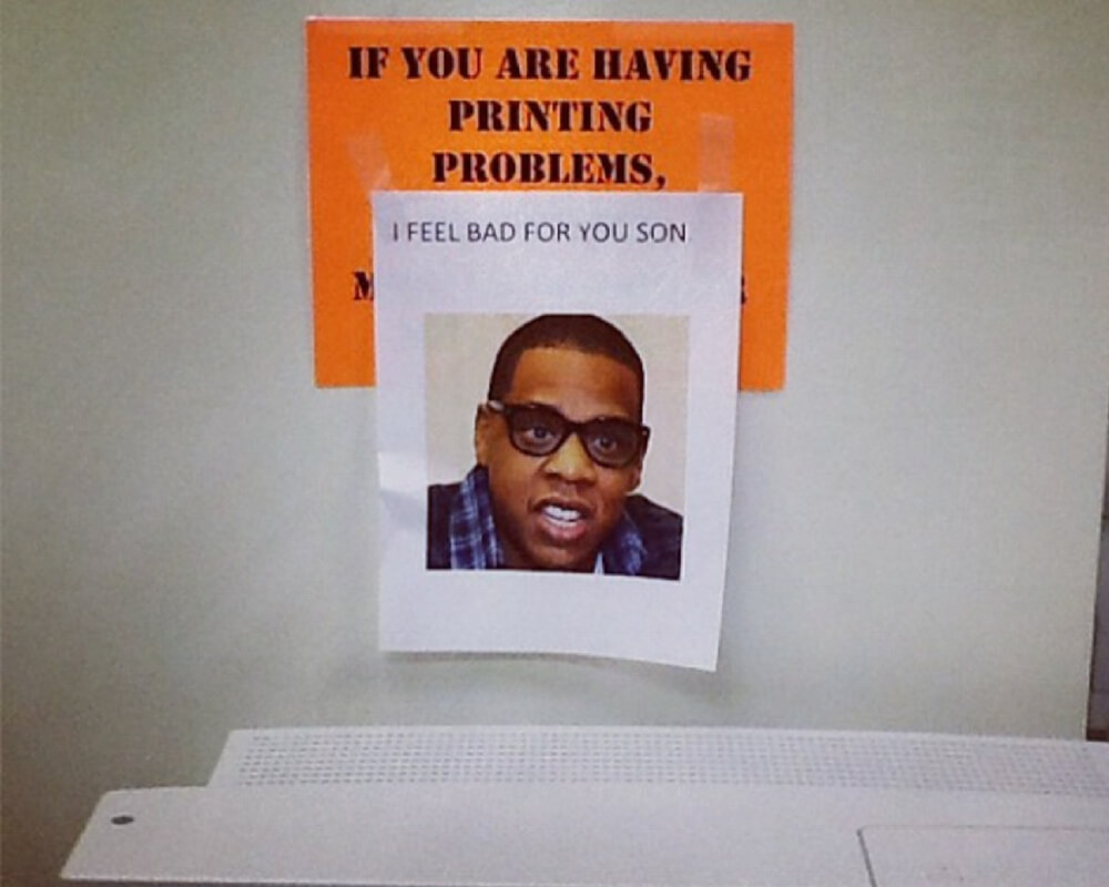 Printers can be downright frustrating. A photo of Jay-Z can go a long way when it comes to making us feel better about a paper jam.