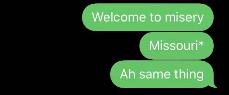 As far as this text messeger is concerned, misery and Missouri are one in the same.