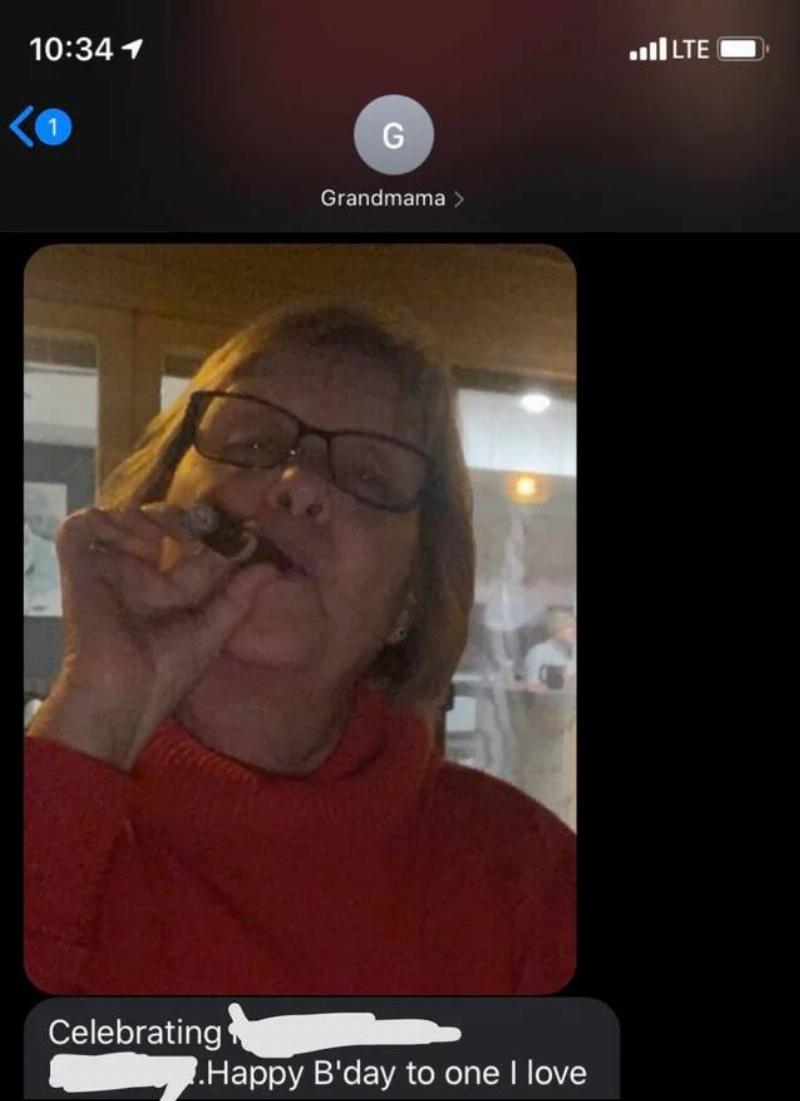 This grandma knows how to have a good time. We're not sure whose birthday she's celebrating, but she's clearly ready to let her hair down.