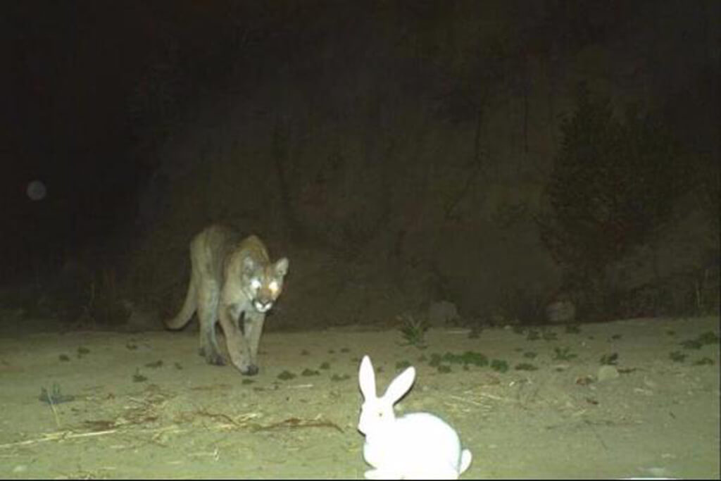 This could play out one of two ways. Either this little bunny is about to meet its maker after being attacked by the mountain lion, or it will escape in the last second. While we don't want the mountain lion to go hungry, we also don't want the rabbit to die.